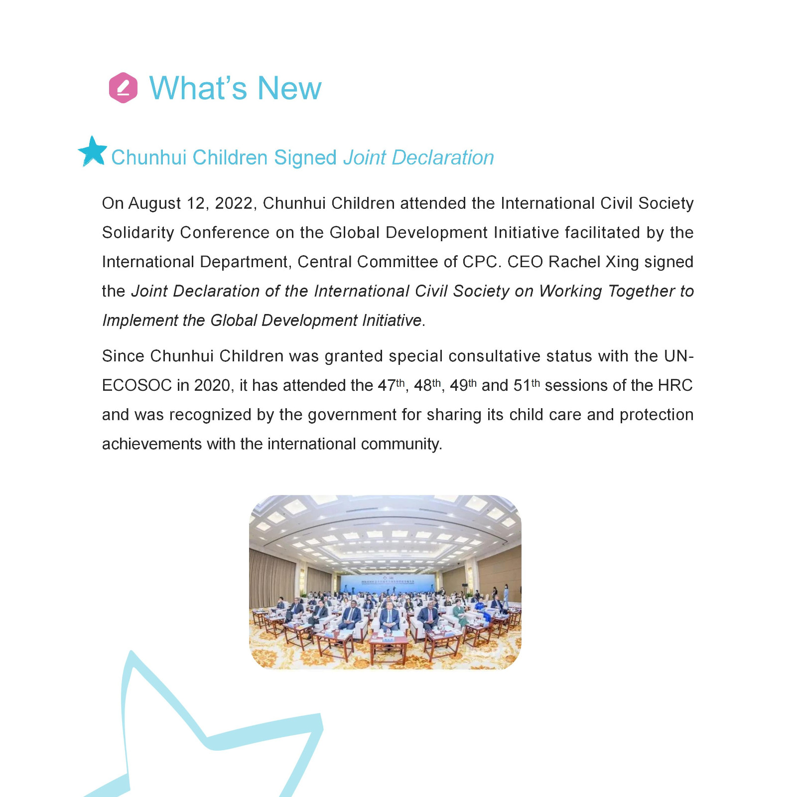 Chunhui Children's Foundation 2022 Q3 Newsletter 2022-10-29 Prev: Chunhui Children's Foundation 2022 Q4 Newsletter Next: Chunhui Children's Foundation 2022 Q2 Newsletter