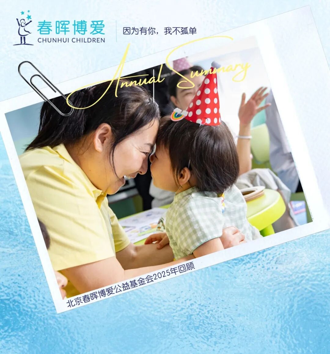 2025年,我们为爱前行,步履不停 2026-01-01 每个孩子生命里都有一个持续关爱他的成人Every child always has a loving adult in his/her life以爱为基,筑梦未来感谢每一次倾心付出感恩每一程坚定同行是这些瞬间凝结成时光里最明亮的星2025,不仅是年轮的印记更是生命的绽放与梦想的回响让我们延续这份感动 上一条:中国慈善家杂志 | 给4784名孤儿当“职业父母” 下一条:十年同行,共沐爱与光|与王力宏一起,聆听爱的回响